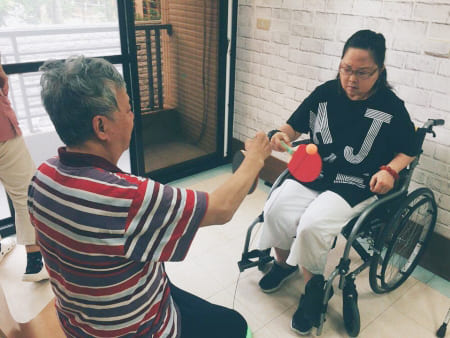 長輩對打乒乓